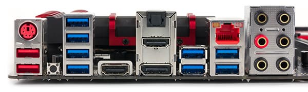 | Разъемы на задней панели | 2× HDMI 1 × DisplayPort 8 × USB 3.0 2 × USB 2.0 1 × RJ-45 1 × S/PDIF (оптический, выход) 6 × аудиоразъемов типа миниджек 1 × PS/2 |