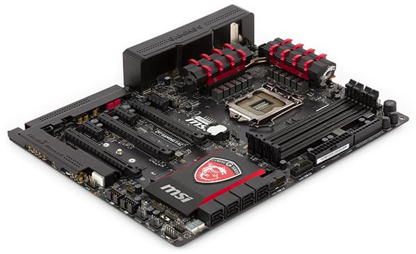 Система охлаждения платы MSI Z97 Gaming 9 AС включает в себя систему, состоящую из двух связанных друг с другом тепловой трубкой радиаторов и одного отдельного радиатора чипсета.
