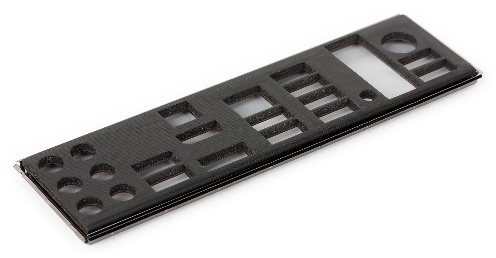 Плата MSI Z97 Gaming 9 AС выполнена в форм-факторе ATX (305×244 мм), и для ее монтажа в корпус предусмотрены 9 стандартных отверстий. Однако отметим, что на заднюю панель разъемов платы сверху надевается защитный чехол, который крепится на текстолит, занимая два стандартных крепежных отверстия. Поэтому прежде чем крепить плату в корпусе, необходимо сначала открутить два винта, которыми крепится защитный чехол.