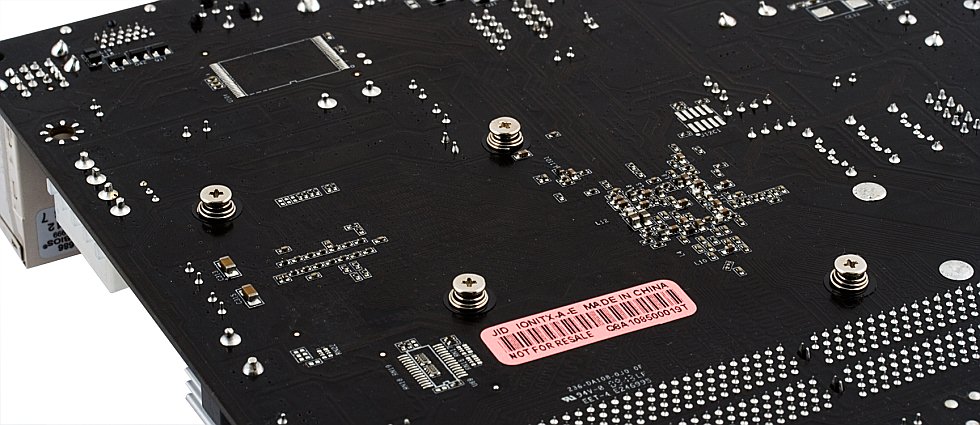 Радиатор крепится к плате нормальными металлическими винтами, а не дохлыми пластиковыми защелками, не обеспечивающими к тому же нормального усилия прижима. Референсные настольные платы NVIDIA уже давно применяют такое решение, не постеснялись использовать его и здесь.