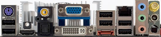 Впрочем, этот перечень исчерпывает стандартные потребности для подключения внутренних устройств в компактном корпусе, а набор разъемов задней панели никак не позволяет жаловаться на скупость разработчиков. Три разных видеовыхода (HDMI, DVI, аналоговый D-Sub; любые два могут работать независимо), два разных S/PDIF-Out для обладателей ресиверов прошлых поколений, и даже 3 аналоговых аудиоразъема на всякий случай (8-канальный звук можно вывести только по HDMI). С прочей периферией тоже все отлично: 6 портов USB, сетевая розетка (разумеется, для гигабитной сети), 1 eSATA и осталось место даже для порта PS/2. Если говорить о топовых конкурентах настольного сегмента (без всякой скидки на миниатюрность Ion!), то не хватает разве что FireWire, но, будем честны, потребность в портах с таким интерфейсом неуклонно падает. Ну и плюс — модуль Wi-Fi-n (AzureWave AR5B91), антенна которого тоже выводится на заднюю панель.