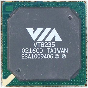 В соответствии с велениями времени чипсет использует южный мост VIA VT8235. Мы, в свое время, уже рассказывали про его преимущества, но поскольку вопреки первоначальным планам реально этот мост стали использовать только теперь, имеет смысл кратко перечислить все его особенности. Первым номером идет, конечно, встроенный контроллер USB 2.0. Чуть раньше в статье уже приводились отличия старой (USB 1.1) и новой (Hi-Speed USB 2.0) версий; VT8235, как и ICH4, поддерживает до 6 устройств USB 2.0. Вторая ожидаемая в последнее время инновация — ATA133. У VIA и тут все в порядке: поддерживается до 4 устройств, реализована полная поддержка технологий Maxtor FastDrive и BigDrive. Ну и по мелочи: поддерживается до 5 PCI 2.1 Bus Master устройств, имеется встроенный сетевой контроллер для 10/100 Мбит Ethernet и AC'97-кодек для 5.1 Surround Sound Audio.