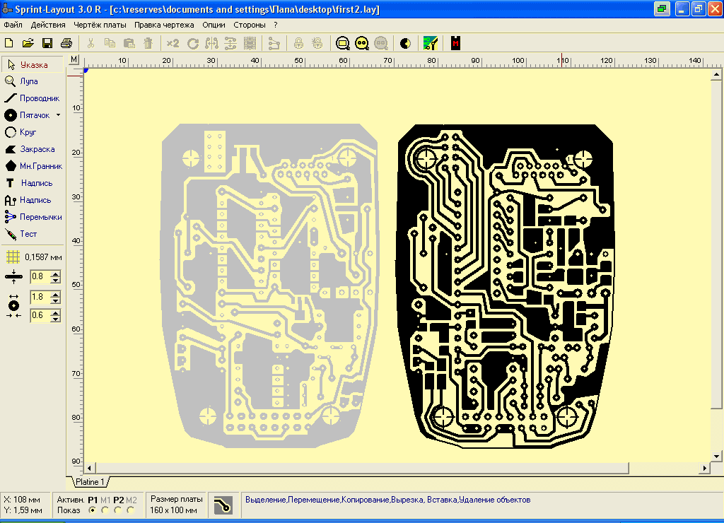 Если ПП несложная, можно нарисовать ее вручную в очень удобной программе с русифицированным интерфейсом — Sprint Layout 3.0R (~650 КБ).