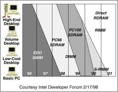 И вот, в феврале 1998 года, когда доработка была завершена, на Intel Developer Forum, компания предложила свое видение того, как будет обстоять дело с памятью на PC в ближайшее время: