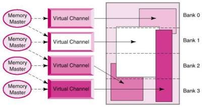Каждому устройству назначается свой высокоскоростной виртуальный канал, учитывающий специфические характеристики его запросов. В том числе, функцией виртуальных каналов является и кэширование — Memory Master посылает каналу приказ на запись или чтение, а тот уже занимается его выполнением со всеми сопутствующими деталями, вроде задержек между циклами, нахождением блоков, и т.д. В результате чего внешние и внутренние операции абсолютно независимы друг от друга и могут исполняться параллельно.