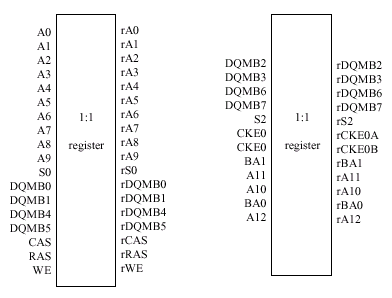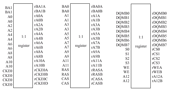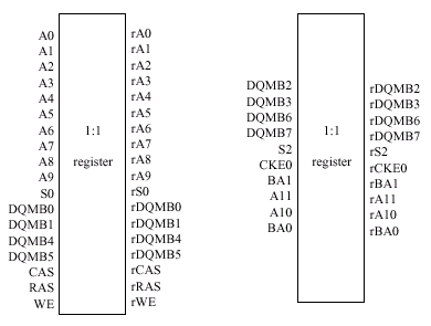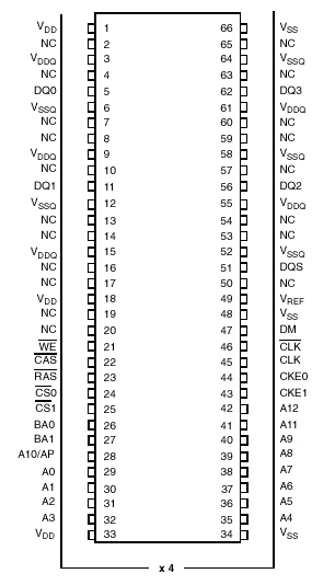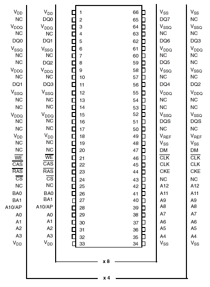 | Маскирование данных, 1 | DQMB [0,2,3,4,6,7] | Адресация и контроль | A[13:0], BA[0,1], RAS#, CAS#, WE# |