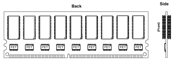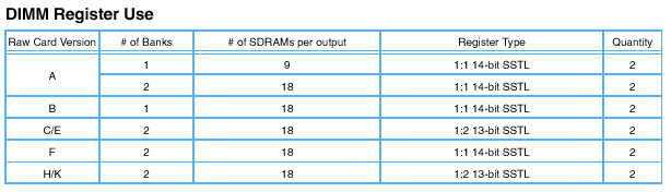 - Группа F аналогична по спектру и организации модулям группы A за исключением того, что используются только двухсторонний монтаж микросхем памяти (16/18 штук для базовой конфигурации и ЕСС соответственно) с организацией х8 (2 физических банка), и введены переключатели на полевых транзисторах (FET-switches).