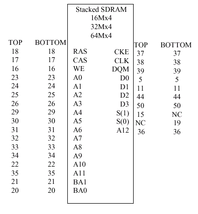 - Группа C и E по предлагаемому спектру аналогичны группе В, однако поддерживаемые объемы модулей 256, 512, 1024 и 2048 Mбайт говорят о более серьезном и более узком круге приложений. Модули этих групп имеют исключительно двухбанковую физическую структуру, используя 36 микросхем (монтаж высокой плотности, Stacked) с организацией х4, пакующихся в корпуса 66 lead stacked TSOP (группа C) и TSOJ (группа E).