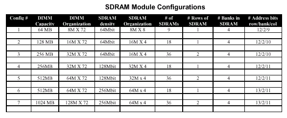 - Группа A определяют самый широкий спектр модулей памяти, определяя объем 64, 128, 256, 512 и 1024 Mбайт с одним/двумя физическими банками и организацией модулей х64 и х72 (стандартные и с поддержкой ЕСС соответственно), используя 8/16 (базовый) и 9/18 (ЕСС) микросхемы. Монтируемые при этом 64, 128, 256 и 512 Мбит микросхемы памяти организации х8 пакуются в стандартный 66 lead TSOP корпус.