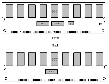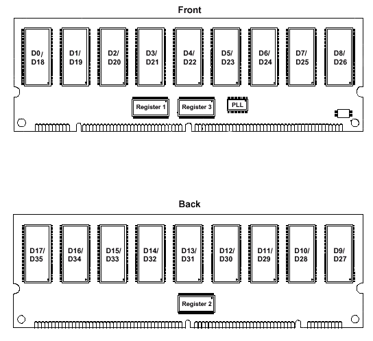 Так, для 64 Мбайт Unstacked-модулей SDRAM Registered DIMM и для модулей, использующих 18 микросхем SDRAM (128, 256 и 512 Мбайт), используется две микросхемы Register. Для Stacked-модулей SDRAM Registered DIMM, использующих 36 микросхем SDRAM (256, 512 и 1024 Мбайт) — три микросхемы Register.