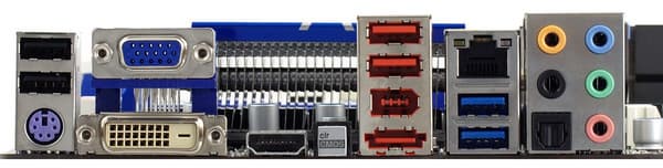Набор периферийных интерфейсов, выведенных на заднюю панель, отличается у рассматриваемых плат лишь в нюансах. К примеру, ESC и Foxconn решили повременить с поддержкой USB 3.0, тогда как на остальных платах установлен контроллер от NEC с поддержкой двух портов нового стандарта, выведенных на заднюю панель и отмеченных цветом (обычно — синим). C поддержкой eSATA ситуация оказалась более разнообразной: на платах ECS и MSI выведен порт из числа чипсетных, соответственно также является совместимым с версией 3.0, ASUS поставила дополнительный контроллер и получился порт SATA 2.0, наконец, в ASRock явно намудрили и вывели eSATA 2.0, сохранив полный комплект чипсетных портов для подключения внутренних устройств (при этом утверждается, что внешний порт также «питается» от чипсета, просто при необходимости один из внутренних портов отключается, а «откат» в поддерживаемой версии вызван трудностями в разводке линии на плате), также к этой плате прилагается планка уже для самостоятельного вывода eSATA 3.0 за счет еще одного внутреннего порта. Из оригинальных отличий можно отметить лишь присутствие двух разъемов LAN на плате ECS, причем есть возможность не только превратить компьютер в интернет-шлюз, но и объединить оба канала в один с удвоенной пропускной способностью. Разумеется, если такую возможность поддерживает используемое вами сетевое оборудование.