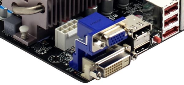 Что касается подключения мониторов к собственным выходам платы, то здесь практикуется традиционная схема: одновременно может задействоваться любой из цифровых портов (HDMI, DVI, DisplayPort) одновременно с аналоговым (VGA). В большинстве случае комбинация видеовыходов включает HDMI, DVI и VGA. Но разработчики из ECS решили отличиться и добавили на свою плату еще и DisplayPort, это удобно, поскольку помогает обойтись без переходников. Кроме того, если подключается несколько дублирующих устройств, например, телевизор или проектор с целью выводить на них такое же изображение, как и на основной монитор, то не нужно будет перетыкать кабели.