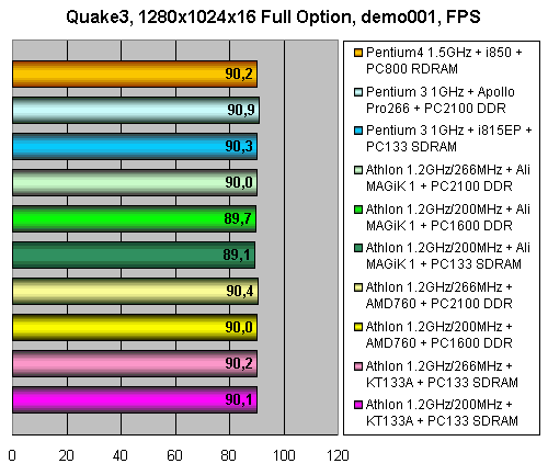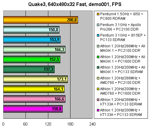 Большое практическое сравнение. Февраль 2001 — Результаты в Quake 3