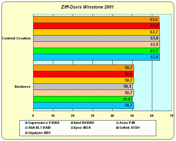 "Надежность — прежде всего". Оверклокинг? Это "не для солидных людей". Платы Intel и Supermicro предназначены для тех, кто разгоном не то что не интересуется, но даже может и вообще о нем ничего не слышал. Стабильные, надежные — им место в низкоуровневых (не будем все-таки забывать про не очень быструю память) рабочих станциях и обычных десктопах. В общем-то, большей скоростью (на фоне платы Intel) отличается Supermicro P4SBA, но отличие это скорее можно назвать "номинальным" — на практике его вряд ли кто-то заметит.