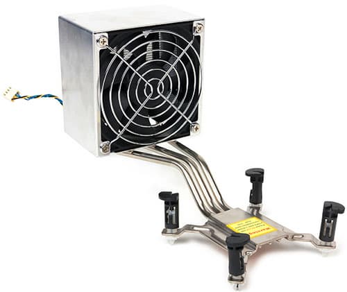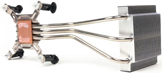 Что собой представляет этот кулер? На самом процессоре устанавливается лишь медный теплосъемник, тремя тепловыми трубками соединяющийся с радиатором, прикрученным непосредственно к задней стенке компьютера.