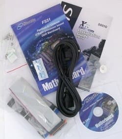 Здесь, наверное, самое время напомнить, что же такое barebone. Попросту говоря, это набор из корпуса, материнской платы (установленной в корпус, со всеми подсоединенными шлейфами) и каких-либо приспособлений, призванных обеспечивать удобство использования продукта. Из нестандартных комплектующих можно отметить разве что один из IDE-шлейфов, разрезанный вдоль проводников и стянутый в узкий пучок кабелей (решение не такое эффектное, как, например, примененное в комплектации плат Chaintech серии Apogee, но, несомненно, столь же эффективное). Впрочем, не совсем понятно, что помешало обработать подобным образом и второй шлейф из комплекта, ибо топология размещения внутри корпуса у них примерно совпадает, так что и препятствовать перемещению воздушных масс они будут примерно в равной степени (про шлейф для флоппи-дисковода сейчас не говорю, так как он располагается в корпусе по-иному, да и не факт что многие покупатели современной системы будут вообще использовать флоппи-дисковод). Разумеется, нельзя также не отметить крайне нестандартное решение, применяемое в SS51G для охлаждения процессора, но о нем речь впереди.