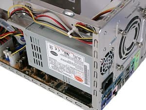 Мощность блока составляет всего 200 Вт, однако этого с лихвой хватило для упомянутого процессора, GeForce4 Ti4600, винчестера и DVD-привода. Отметим, что помимо стандартного разъема питания ATX на плате FS51 разведен не соответствующий спецификации ATX 2.03 «квадратный» дополнительный разъем, а аналог применяемого у жестких дисков, CD/DVD-приводов и т.п. Чем это вызвано, учитывая абсолютную предсказуемость используемого БП, мы сказать затрудняемся.