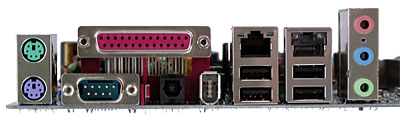 - 1 LPT, 1 COM-порт, S/PDIF-Out типа TosLink и разъем FireWire;