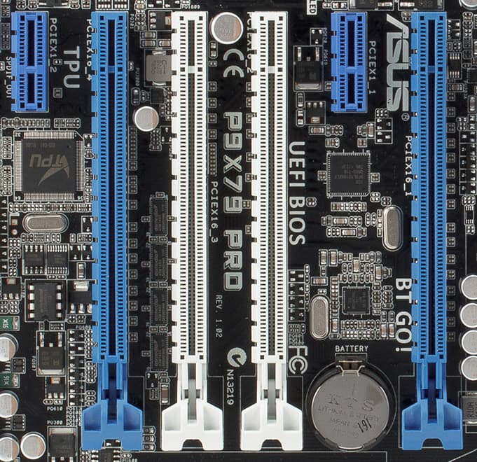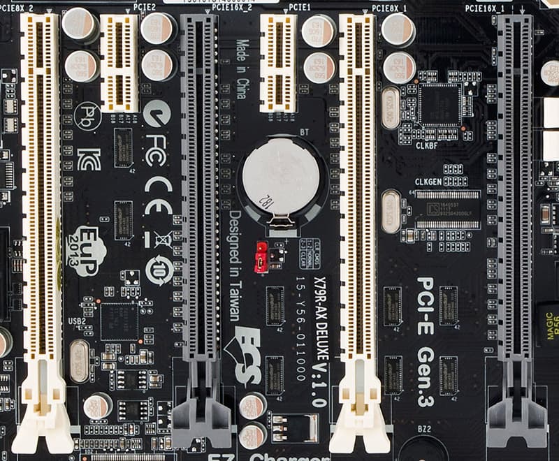 Наконец, возможность организовать 3 почти полноскоростных слота для графики (платформы Socket 1155/1156 могли обеспечить лишь один) неминуемо вносит свои коррективы в дизайн плат: одни производители бесхитростно разводят только N штук PCIEx16 и называют это «игровым дизайном», другие пытаются соблюдать приличия и находят место приткнуть пару PCIEx1 (или даже PCI) в промежутках между четырьмя PCIEx16.