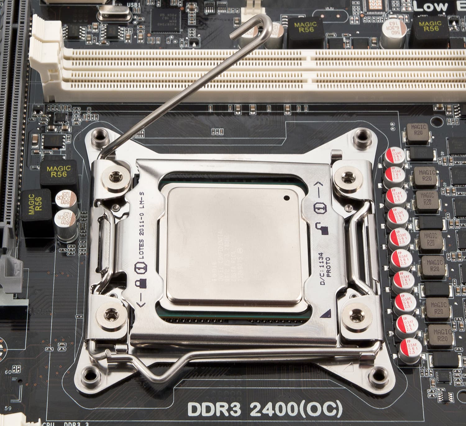 Дизайн нынешних моделей под Socket 2011 заметно отличается от типового дизайна прежних моделей среднего сегмента. Более того, и на платы прежней топовой платформы Socket 1366 они не очень похожи. Начнем с неизбежно главного параметра — определяющего название платформы.