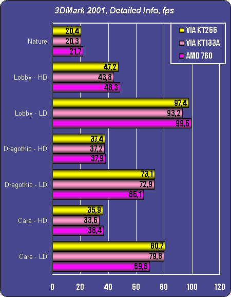 Но примерно равные результаты AMD760 и KT266 совсем не впечатляют на фоне KT133A. И опять назад, к