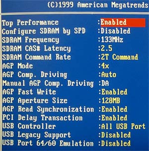 С одной стороны, высокая настраиваемость чипсета (регулировка из BIOS таких функций как многочисленные тайминги памяти, interleave, DRAM command rate) иногда что называется "вылезает боком" — горе-умельцы сразу же норовят "закрутить все гайки", а потом жалуются на необоримые глюки и зависания. Но про них мы помолчим — сдуру можно любую систему настроить так, что она работать перестанет. А вот в руках у того, кто действительно понимает что делает, плата на чипсете VIA KT266 может стать инструментом, позволяющим с максимальной полнотой задействовать возможности современной скоростной PC2100 DDR SDRAM и новых процессоров AMD Athlon с системной шиной 266 МГц.
