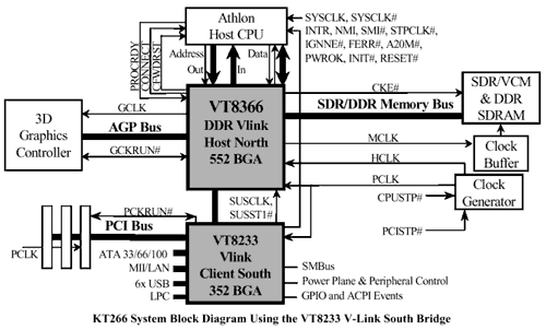 - VIA Apollo KT266 (VT8366 North Bridge 552-pin BGA + VT8233 South Bridge 376-pin BGA)