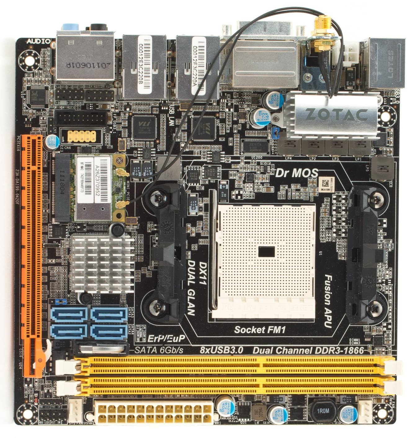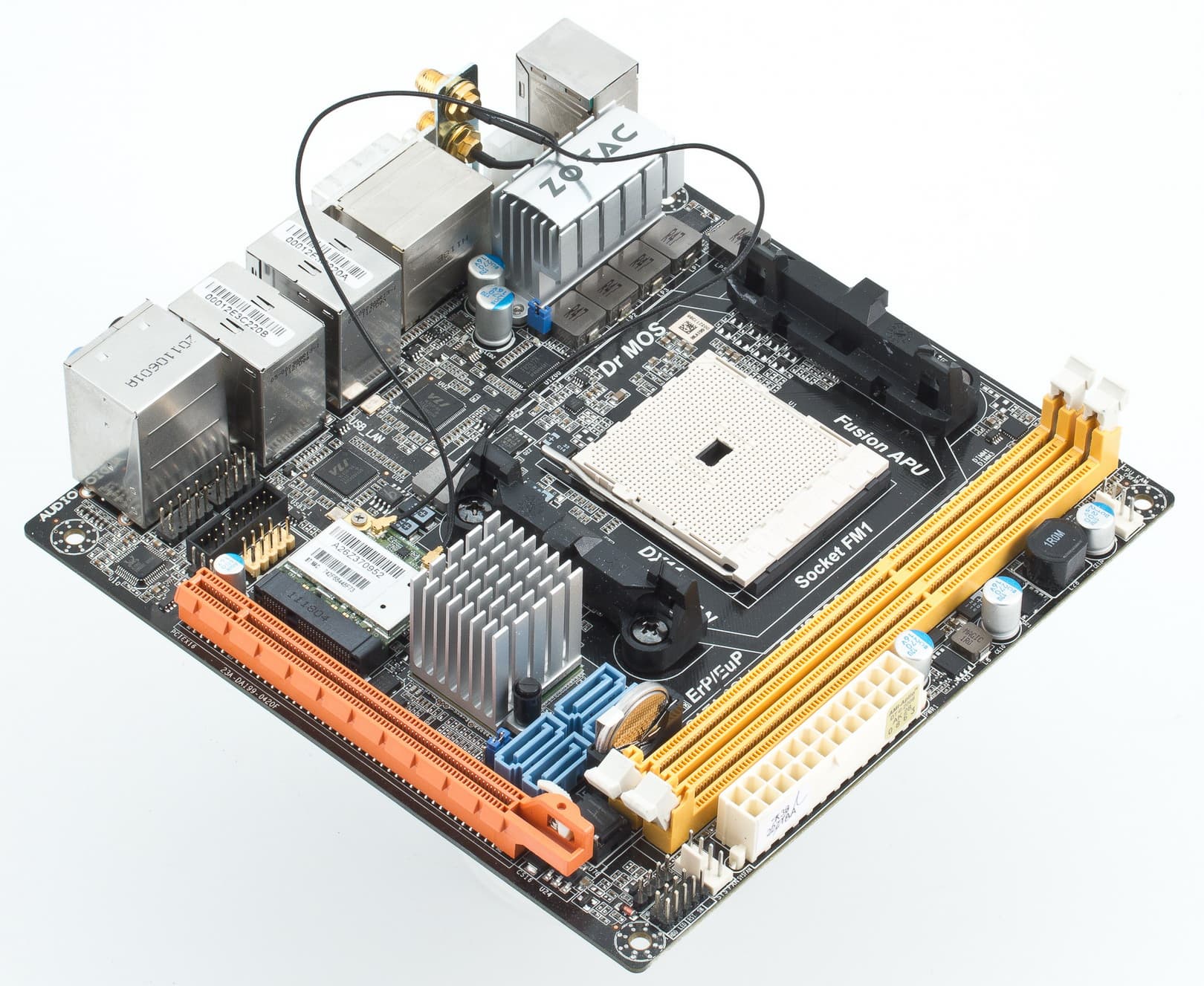 Пока рынок полноразмерных плат все больше глобализуется (если не сказать — монополизируется), количество желающих выпускать под своей маркой компактные модели не убывает. Да, это нишевый продукт, который по объемам продаж не может сравниться с «традиционными» моделями. Однако именно поэтому и заработать на продаже каждой такой платы в отдельности можно чуть больше. Те, кому важна компактность, а точнее — максимум функциональности при минимальном размере, обычно с пониманием относятся к некоторой переплате. Конечно, если она разумная, а сама плата не имеет никаких досадных недочетов. Посмотрим с этой точки зрения на Zotac A75-ITX WiFi.