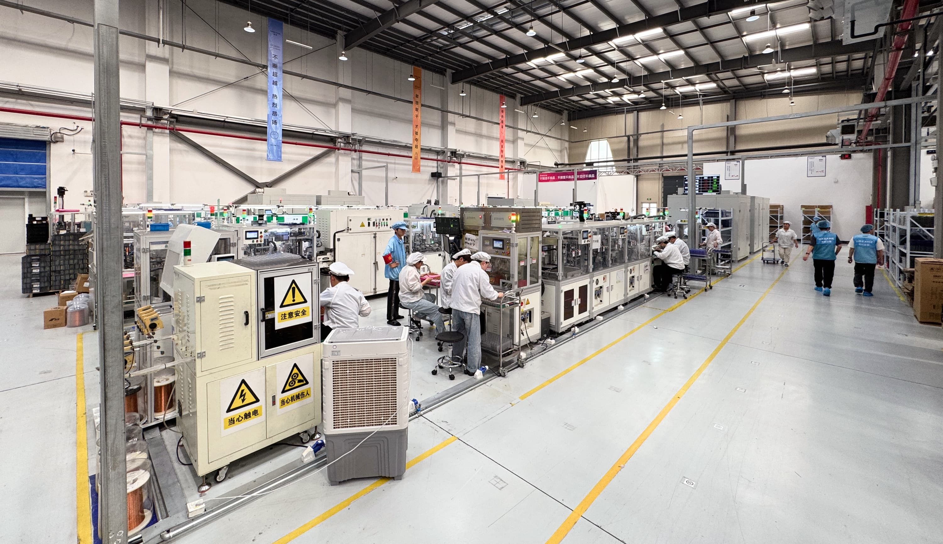 Переходим непосредственно к производству. Общая площадь цеха по производству двигателей (корпус D) составляет 9300 квадратных метров, а количество линий сборки компания планирует довести до 16. В цехах создают, прежде всего, «сердца» пылесосов — те самые бесщеточные моторы.