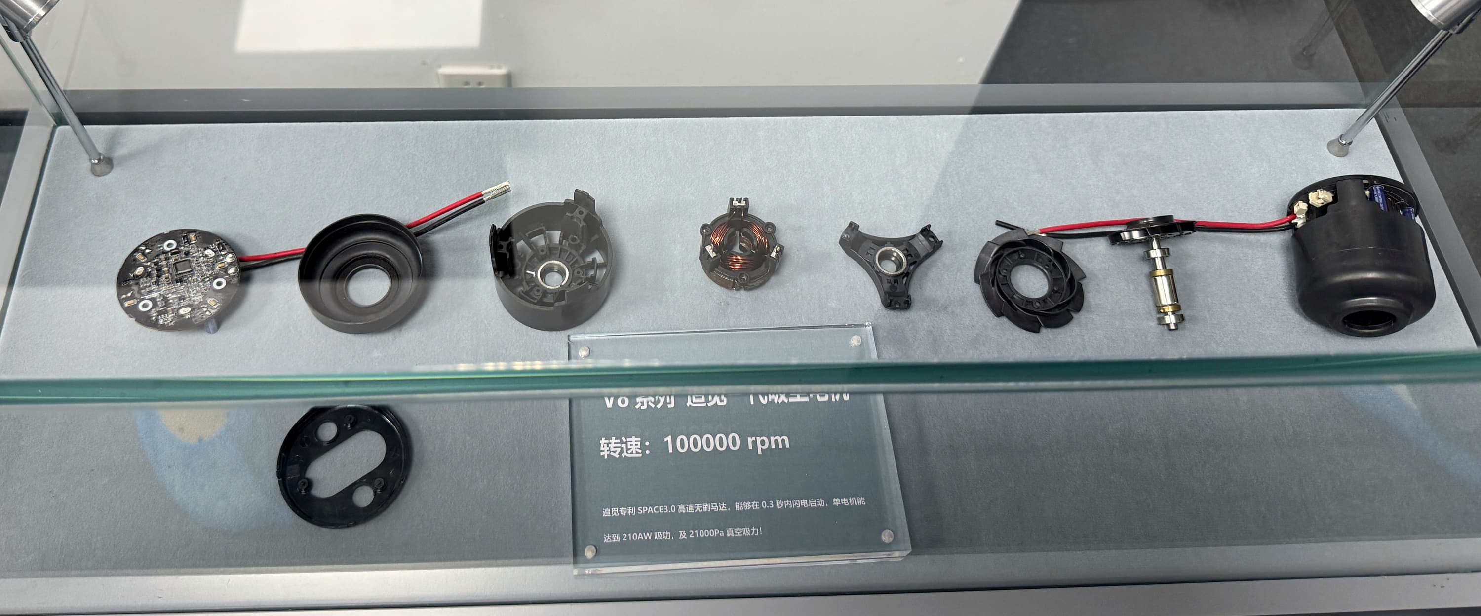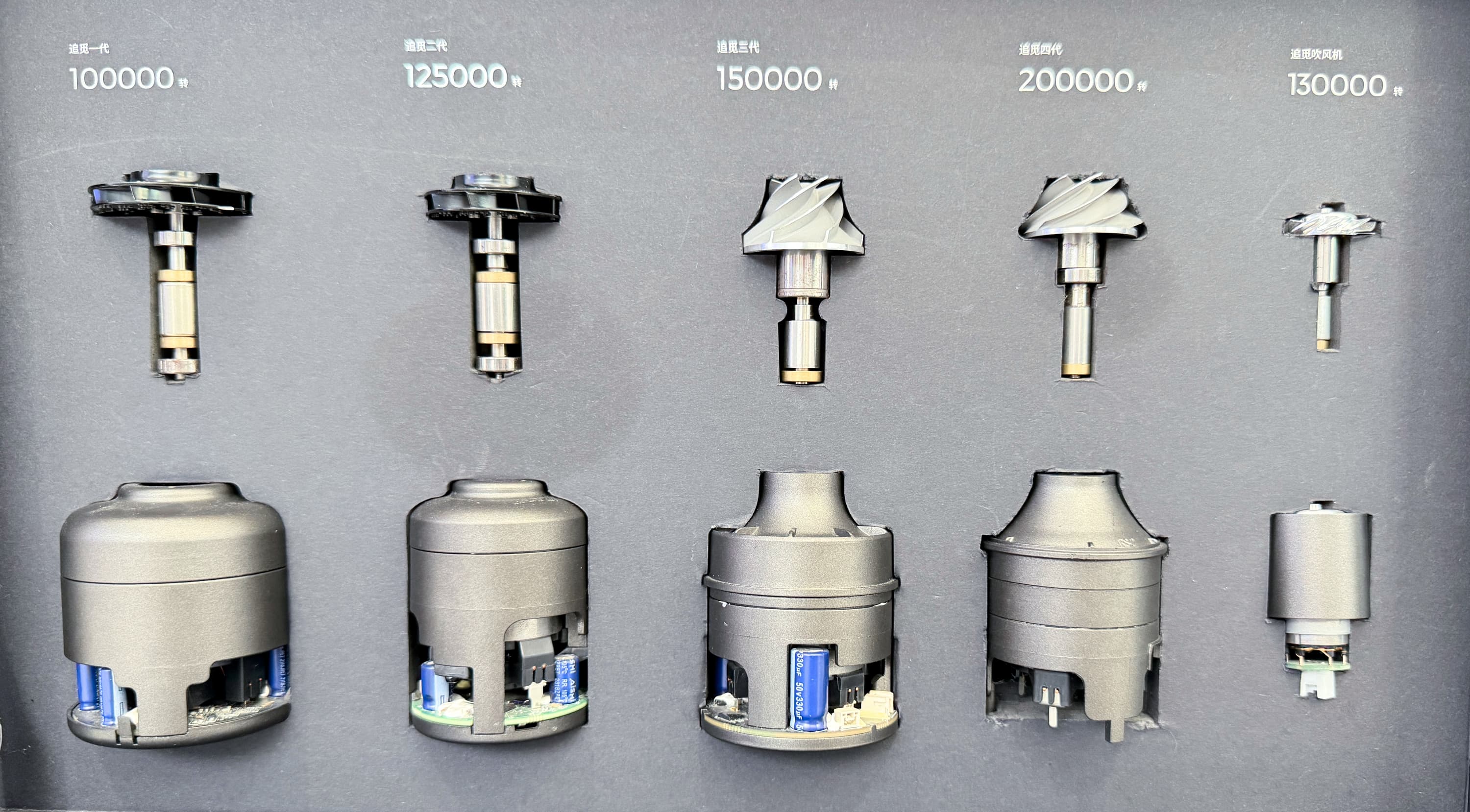 Сейчас этот «первенец» красуется под стеклом в качестве почетного экспоната в штаб-квартире наряду с новейшим двигателем. Dreame говорит, что первой в мире представила двигатель с частотой вращения 200 000 об/мин. Сегодня компания производит двигатели с частотой вращения 160 000, 180 000 и 200 000 об/мин.
