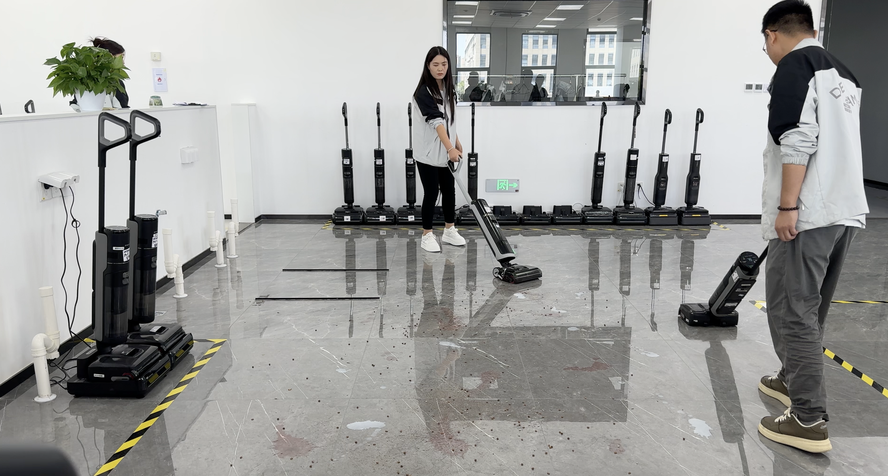 В тестировании вертикальных моющих пылесосов специалисты рассыпают и разливают сор и грязь на самые различные половые покрытия (плитка, ламинат, паркет), а после ритмично убирают все это, фиксируя результаты. И так продолжается снова и снова.