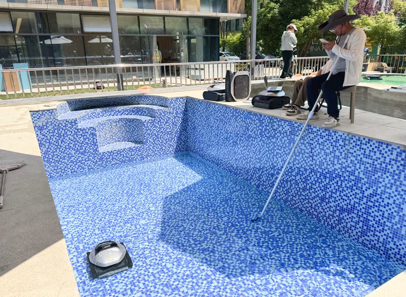 Неожиданно, мы встретили по пути большое пространство, где разрабатываются и тестируются, например, роботизированные мойщики бассейнов. Продукт больше рассчитан на рынок США, где формат частных бассейнов наиболее распространен. В России этот продукт пока не представлен.