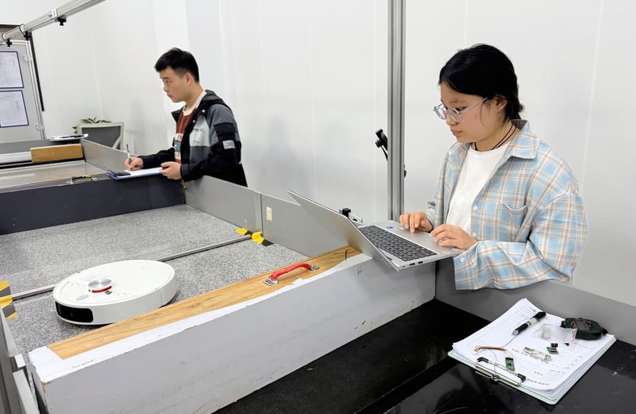 После шоурума с историческими стендами и множеством цифр переходим к тестовым лабораториям, где на прочность, устойчивость и выносливость рутинно проверяются все компоненты производимой компанией техники. Роботы-пылесосы, например, учатся преодолевать все более высокие препятствия на стандартизированном испытательном полигоне путем изменения таких факторов, как высота ступени, расстояние между ними и форма.