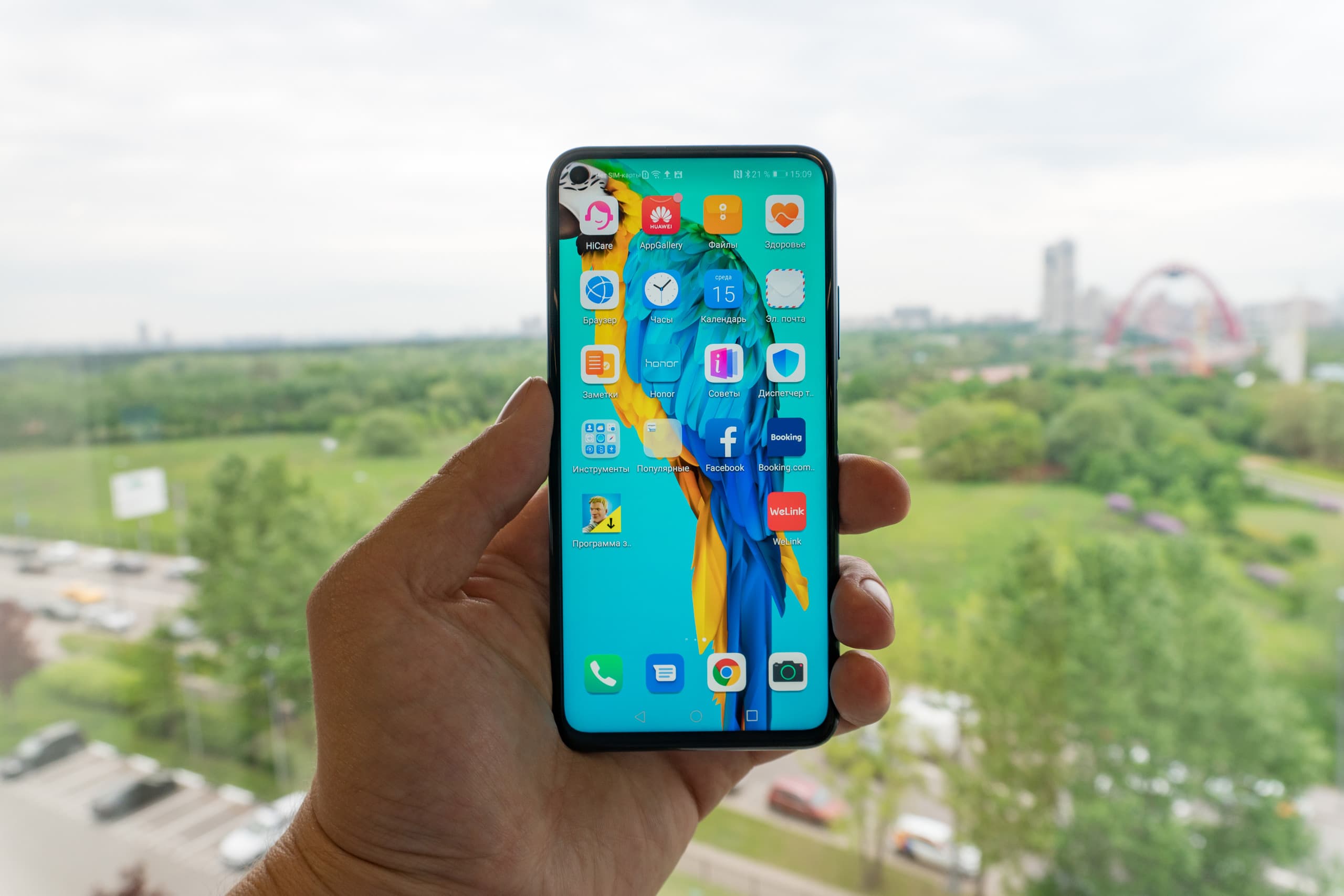 Один из самых популярных флагманов Honor — лидер линейки Honor 20, модель Honor 20 Pro. Чипсет — топовый, но это и так понятно. Экран — безрамочный, как стало модно в 2019 году. Более того, фронтальная камера была врезана прямо в дисплей, и смотрелось это очень эффектно. Еще интереснее основная камера, которая стала прорывом в мобильном фото того времени. Она имела четыре объектива и, соответственно, четыре матрицы (один из модулей не делал снимки как таковые, но нужен был как сенсор глубины). Макросъёмка, широкоугольная съёмка, ночная съёмка плюс трёхкратный оптический и тридцатикратный цифровой зум — это впечатляло тогда и остаётся отличным уровнем даже в 2021 году.