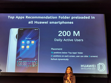 Одним из ключевых элементов экосистемы выступает упоминавшаяся ранее глобальная платформа распространения приложений Huawei AppGallery. По данным компании, количество активных пользователей (MAU, Monthly Active Users) уже достигло 390 миллионов, а общее число загружаемых приложений — 180 миллиардов за год.