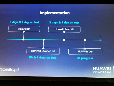 По данным разработчиков ранее упоминавшегося сервиса Yanosik, имплементация в экосистему Huawei занимает немногим более десяти дней.