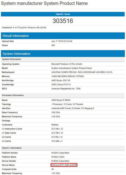 Продолжает подборку новость о 3D-картах — «Nvidia GeForce RTX 2080 Super обошла в тесте OpenCL обычную GeForce RTX 2080, но много уступила AMD Radeon RX 5700 XT 50th Anniversary». Уточним, что этот тест OpenCL является частью теста Geekbench.