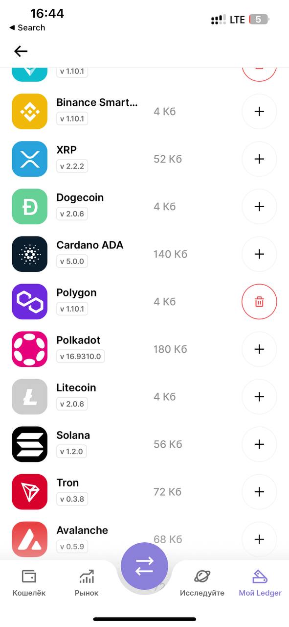 Внутри Ledger Nano X установлен чип Secure Element (CC EAL5+), в котором может храниться до 100 приватных ключей. Да, к сожалению, память ограничена и в зависимости от того, какие активы вы выбираете, их влезет больше или меньше. Доступной памяти в чипе всего 1,78 МБ. Но и каждое приложение занимает не очень много места. Самые популярные криптовалюты, например, Bitcoin — 84 КБ, Etherium — 84 КБ. Однако, есть и Polkadot и Cardano, которым нужно 140 КБ, и BNB или Litecoin, которым достаточно 4 КБ. В общем, в среднем, несколько десятков приватных ключей хранить в Ledger Nano X возможно, но точно не все.