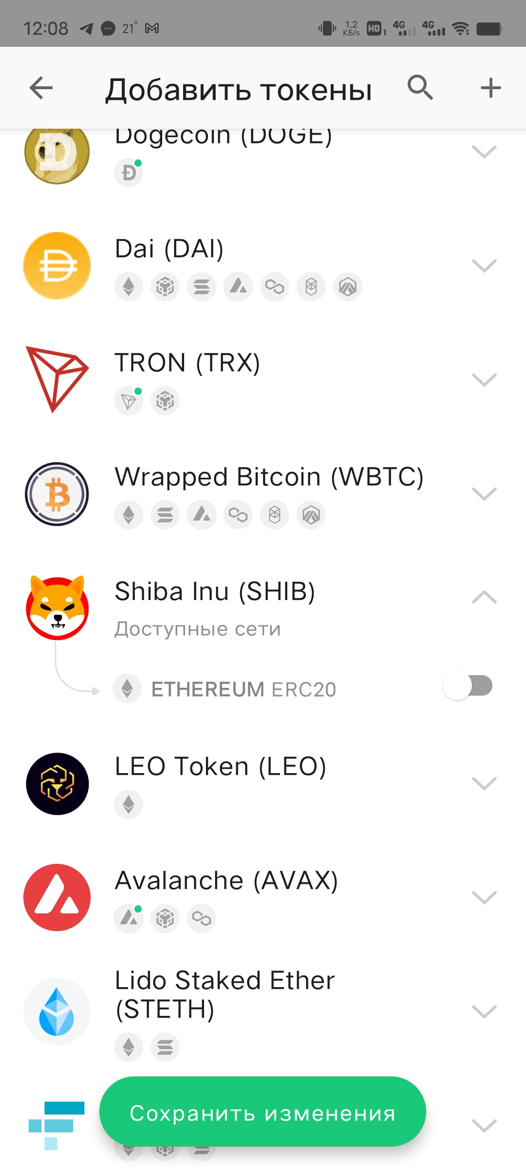 Изначально на главном экране видно только монеты Bitcoin и Ethereum. Остальные валюты с соответствующим блокчейнами необходимо подключать вручную.