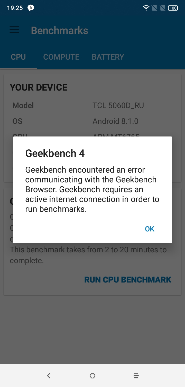 Mediatek Helio P22 — платформа достаточно свежая, представленная весной 2018 года, но предназначена она для смартфонов бюджетного уровня, и высоких результатов продемонстрировать не в силах. Платформа по текущим меркам совсем слабенькая, в AnTuTu выдает всего около 70К очков, а ее GPU не поддерживает API Vulkan. В смартфоне Alcatel 5V мы видим несколько урезанную версию этой SoC: штатно у MediaTek Helio P22 частота всех 8 ядер достигает 2,0 ГГц, здесь же у четырех она понижена до 1,5 ГГц. И еще одна любопытная деталь: популярный бенчмарк GeekBench наш смартфон почему-то отказался запускать наотрез. Возможностей данной платформы пока хватает для основных задач смартфона в качестве карманного помощника, но, конечно, это не игровое и не мультимедийное решение. Да и запаса мощи для будущих обновлений у такой платформы нет, это смартфон с коротким жизненным циклом.