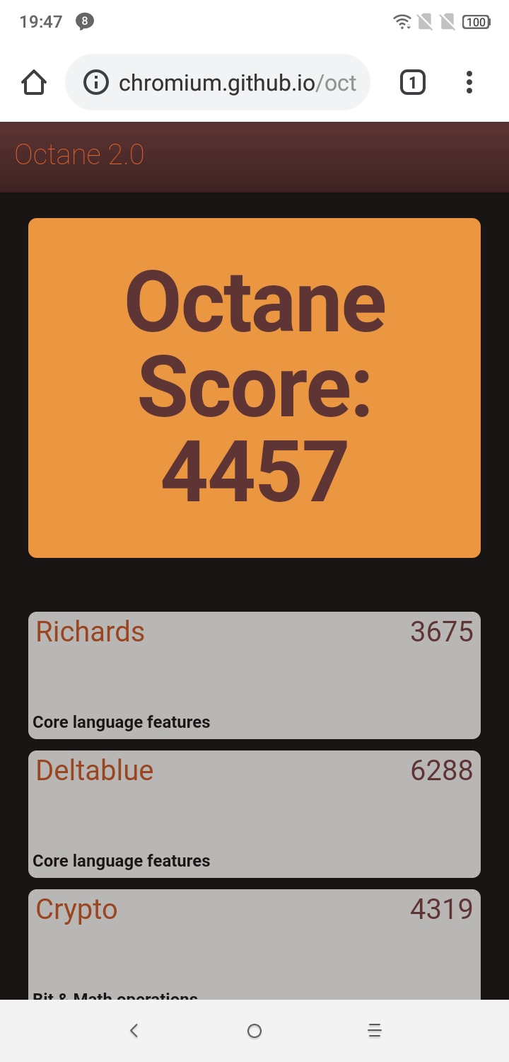 Что касается бенчмарков для оценки скорости движка javascript, то стоит всегда делать скидку на то, что в них результаты существенно зависят от браузера, в котором запускаются, так что сравнение может быть истинно корректным только на одинаковых ОС и браузерах, а такая возможность имеется при тестировании не всегда. В случае с ОС Android мы всегда стараемся использовать Google Chrome.
