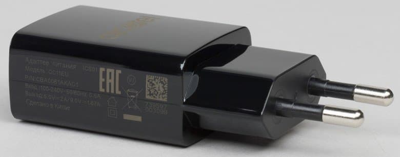 От комплектного сетевого адаптера смартфон заряжается током 1,8—1,6 А при напряжении 9 В, на полную зарядку у него уходит около 2 часов. Беспроводная зарядка не поддерживается.