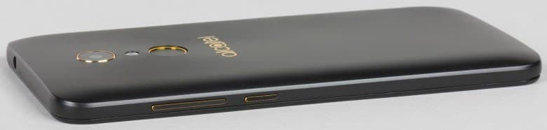 В продаже Alcatel A7 представлен только в одной расцветке — черной с золотистой окантовкой отдельных элементов.