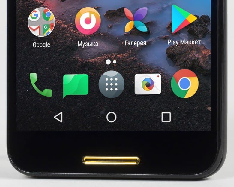 В нижней части прорезана щель для громкоговорителя, она, как и верхняя, обрамлена толстым золотистым ободком, и выглядит это настоящей «цыганщиной», по-другому и не скажешь. Если отстраниться от вкусовых предпочтений, то размещение динамиков на передней панели было бы оправдано, если бы они работали в стереопаре, но здесь это не так. Под экраном нет ни центральной овальной кнопки, ни сенсорных аппаратных кнопок; кнопки здесь только экранные.
