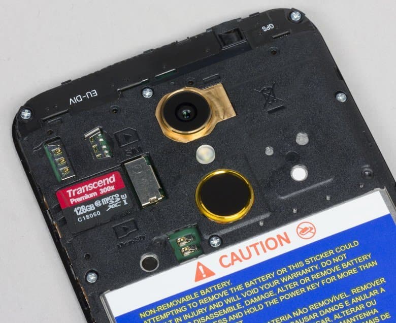 Разъем под карточки не гибридный и даже не двойной. Неожиданно под крышкой обнаружился лишь одинарный слот для SIM-карты формата Nano-SIM, а рядом имеется разъем для карты памяти microSD.