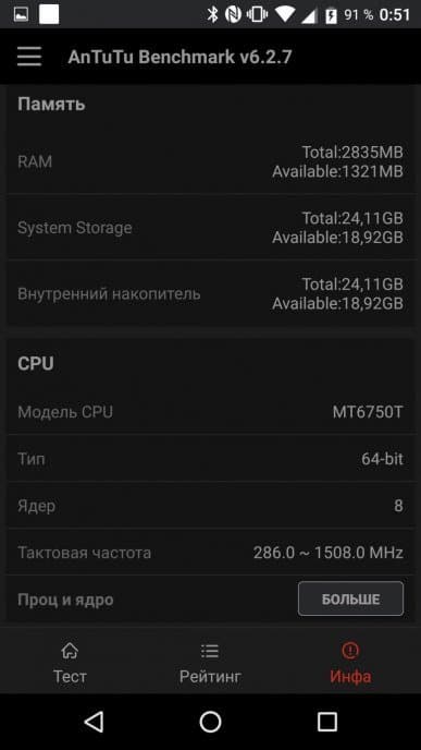 MT6750Т — это SoC начального уровня, предназначенная для смартфонов и планшетов бюджетного класса. Сейчас у MediaTek в данном сегменте есть более интересные решения. Платформа слабенькая, особенно в графической составляющей, API Vulkan не поддерживается. Тем не менее, она справляется пока с большинством задач, можно даже поиграть в игры. Например, Mortal Kombat X идет на смартфоне без заметных притормаживаний. Однако запаса мощи для будущих обновлений у такой платформы, естественно, нет.