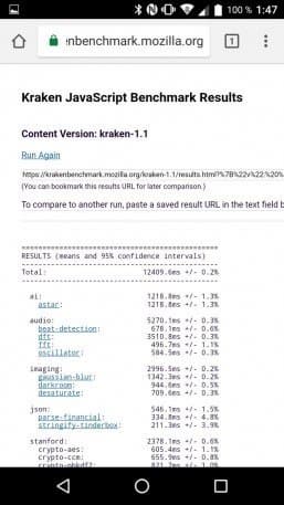 Что касается бенчмарков для оценки скорости движка javascript, то стоит всегда делать скидку на то, что в них результаты существенно зависят от браузера, в котором запускаются, так что сравнение может быть истинно корректным только на одинаковых ОС и браузерах, а такая возможность имеется при тестировании не всегда. В случае с ОС Android мы всегда стараемся использовать Google Chrome.