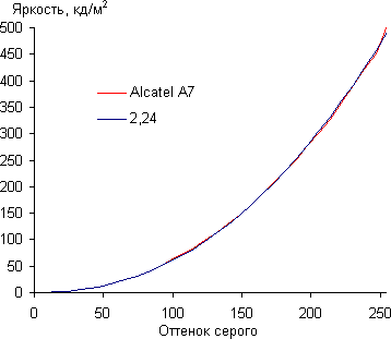 Контрастность (примерно в центре экрана) высокая — порядка 1100:1. Время отклика при переходе черный-белый-черный равно 18 мс (10 мс вкл. + 8 мс выкл.). Переход между полутонами серого 25% и 75% (по численному значению цвета) и обратно в сумме занимает 27 мс. Построенная по 32 точкам с равным интервалом по численному значению оттенка серого гамма-кривая не выявила завала ни в светах, ни в тенях. Показатель аппроксимирующей степенной функции равен 2,24, что близко к стандартному значению 2,2. При этом реальная гамма-кривая немного отклоняется от степенной зависимости: