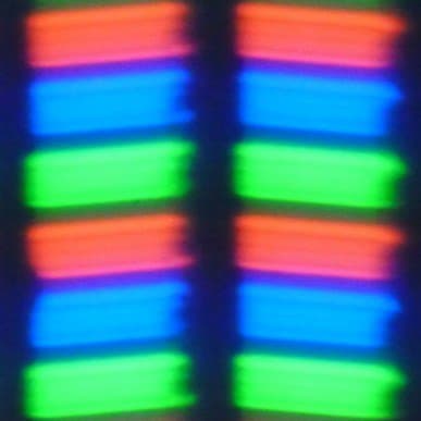 В данном смартфоне используется матрица типа IPS. Микрофотографии демонстрируют типичную для IPS структуру субпикселей: