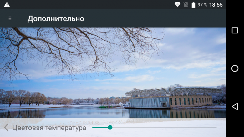 При ручном управлении яркостью и при выводе белого поля во весь экран максимальное значение яркости составило около 515 кд/м², минимальное — 17 кд/м². Максимальная яркость очень высокая, и, учитывая хорошие антибликовые свойства, читаемость экрана даже в солнечный день вне помещения должна быть на приличном уровне, но не все так хорошо — см. ниже. В полной темноте яркость можно понизить до комфортного значения. В наличии автоматическая регулировка яркости по датчику освещенности (он находится справа от прорези фронтального громкоговорителя). В автоматическом режиме при изменении внешних условий освещенности яркость экрана как повышается, так и понижается. Работа этой функции зависит от положения ползунка регулировки яркости. Если он на 100%, то в полной темноте функция автояркости уменьшает яркость до 60 кд/м² (ярковато), в условиях освещенного искусственным светом офиса (около 550 лк) устанавливает на 260 кд/м² (нормально), в очень ярком окружении (соответствует освещению ясным днем вне помещения, но без прямого солнечного света — 20000 лк или немного больше) яркость повышается до 515 кд/м² (до максимума, так и нужно). Если ползунок примерно на 50%, то значения следующие: 20, 100 и 515 кд/м² (в принципе, нормально), а если регулятор на 0% — 2, 20 и 515 кд/м² (первое и второе значение занижены). Результат нас не совсем устроил, поэтому мы установили ползунок примерно на 60% и получили следующие значения: 20, 150 и 515 кд/м² (идеально). Получается, что функция автоподстройки яркости работает адекватно и позволяет пользователю настраивать свою работу под индивидуальные требования. На любом уровне яркости значимая модуляция подсветки отсутствует, поэтому нет и никакого мерцания экрана.